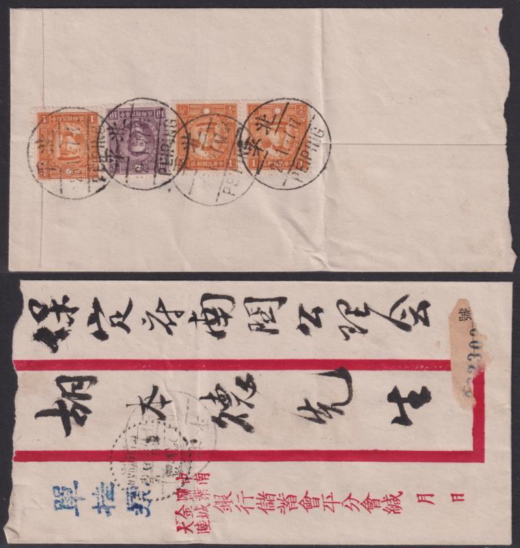 China 1938 1c x 3 & 10c Martyrs on reg'd Peiping cover, with PEIPING "21.1.7" bilingual cds, with bank chop & red h/s re closing