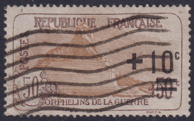 France 1922 10c on 50c + 50c War Orphans' Fund. SG 393. Cat £31. FU. (Image)