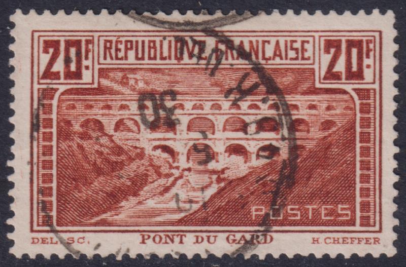 France 1929 20F Pont du Gard, p13. SG 475b. Cat £60. FU.