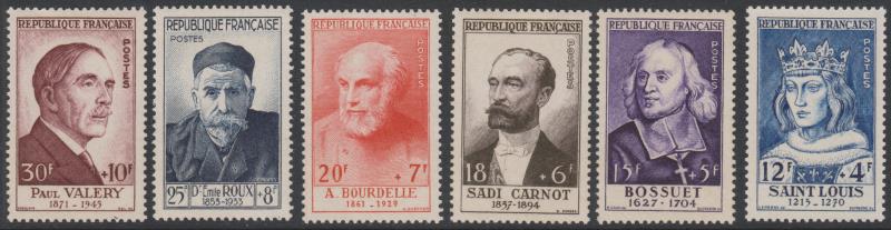 France 1954 National Relief Fund (portraits) set of 6. SG 1215-20. Cat £250. MUH. (Image)
