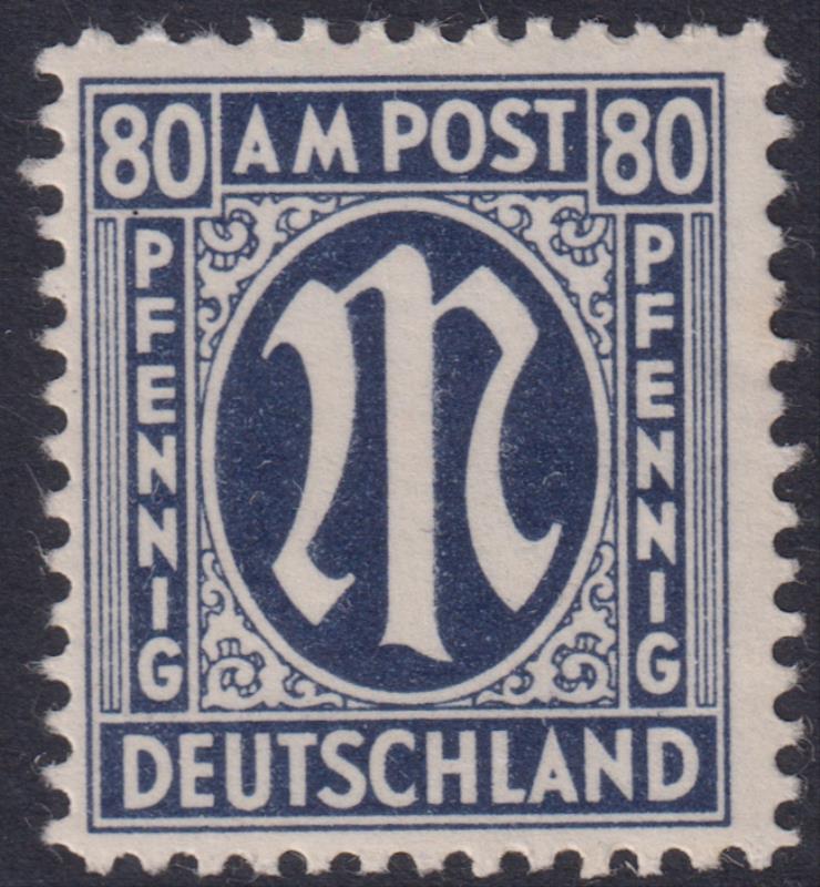 3273 * imageGermany-British & American Zone 1945 80pf indigo, p11. SG A34. Cat £55. MUH. (Image)