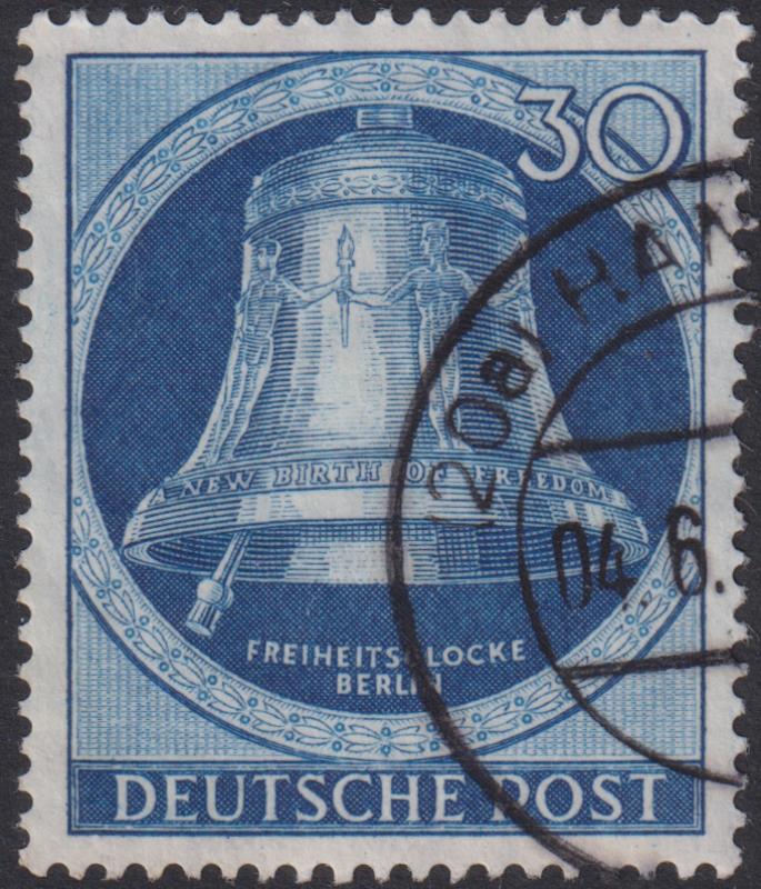 3277 U imageGermany-West Berlin 1949 30pf Freedom Bell blue, clapper at left. SG B78. Cat £120. FU. (Image)