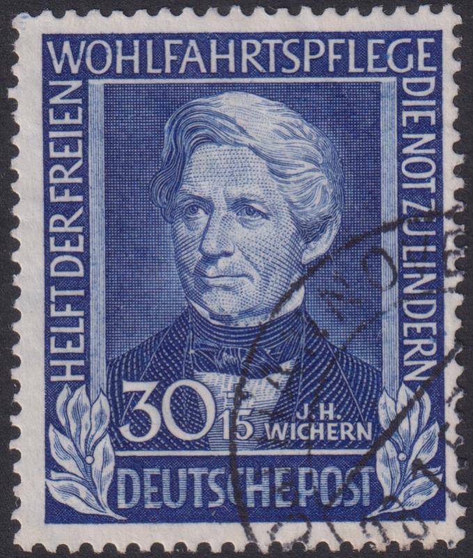3278 U imageGermany-West 1949 30pf + 15pf Refugees Relief Fund blue (JH Wichern). Top value. SG 1042. Cat £160. FU. (Image)