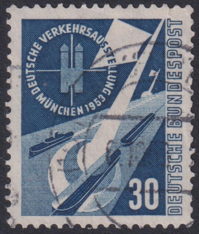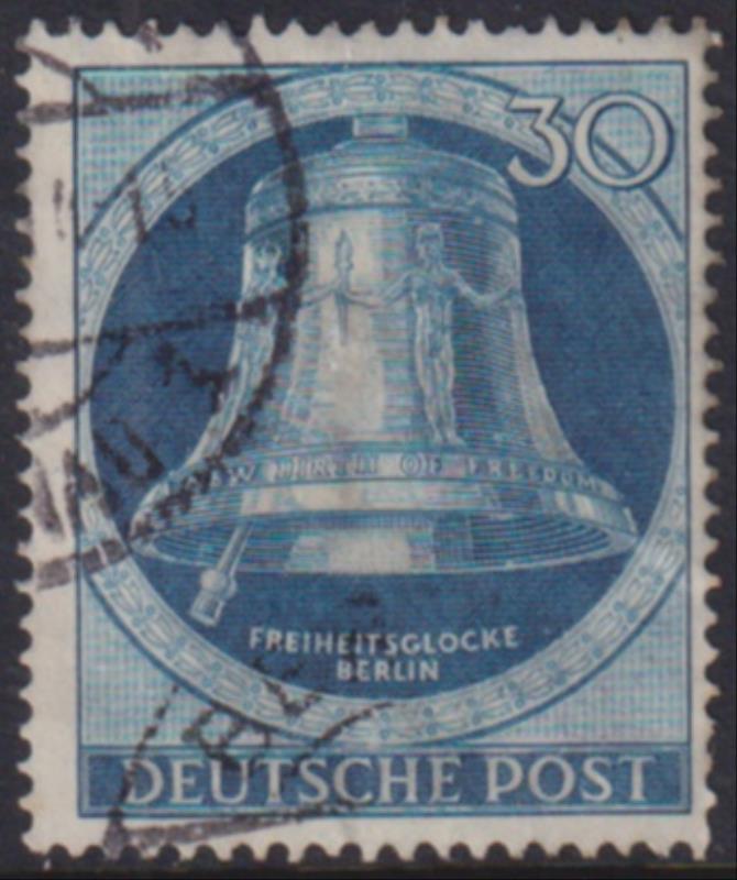 Germany-West Berlin 1951 30pf Freedom Bell, blue, clapper to the left. SG B78. Cat £120. FU. (Image)