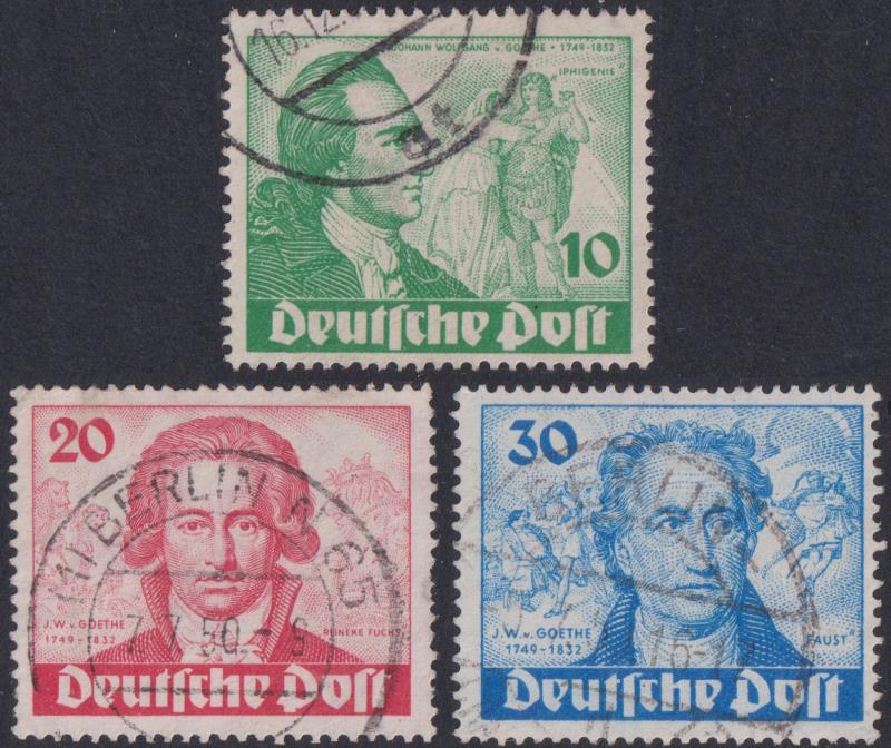 Germany-West Berlin 1949 Goethe set of 3. SG B61-3. Cat £225. FU. (Image)
