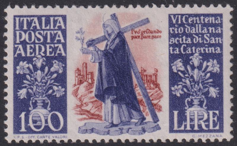 3322 M imageItaly 1948 100L St Catherine of Siena violet & red-brown. SG 702. Cat £140. Mint. (Image)