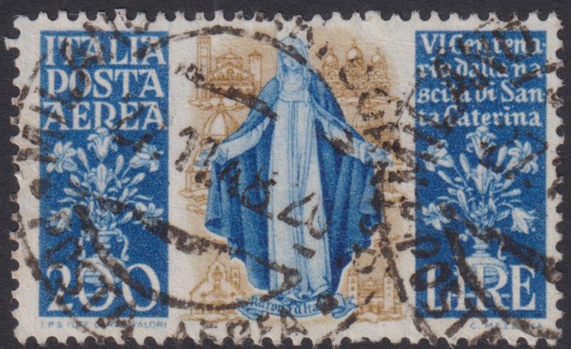 3323 U imageItaly 1948 200L St Catherine of Siena blue & bistre. SG 703. Cat £29. FU. (Image)