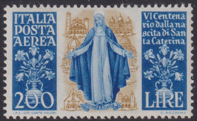 3324 M imageItaly 1948 200L St Catherine of Siena blue & bistre. Top value. SG 703. Cat £85. Mint. (Image)