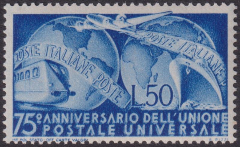 3328 M imageItaly 1949 50L UPU 75th Anniv. SG 725. Cat £120. LH mint. (Image)