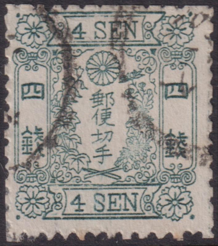 3331 U imageJapan 1875 4s Dragons & Chrysanthemums grey-green. Scott 52. Cat US$100. FU. (Image)