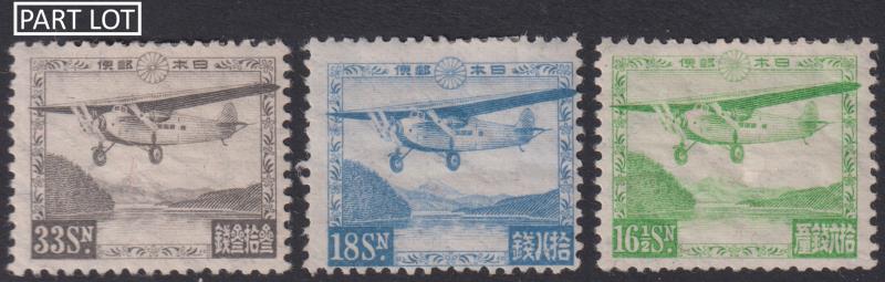 3335 M imageJapan 1929 8½s-33s Air set of 5 (plane over lake). SG 257-61. Cat £160. Mint. (Image)