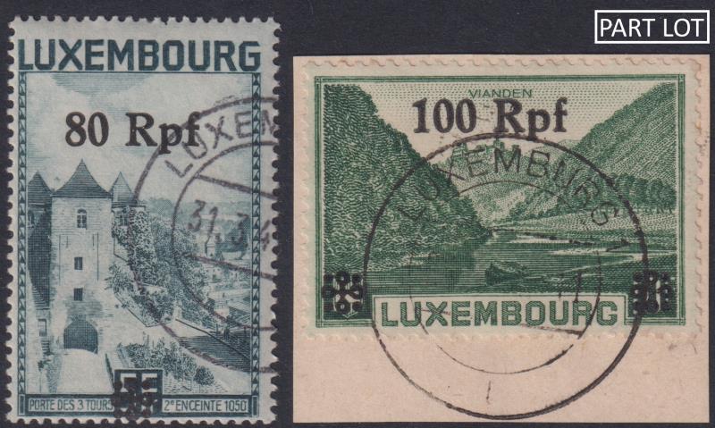 3373 U imageLuxembourg-German Occupation 1941 Luxembourg surcharged set of 16, most on small pieces. SG 413-8. Cat £31. FU. (Image)