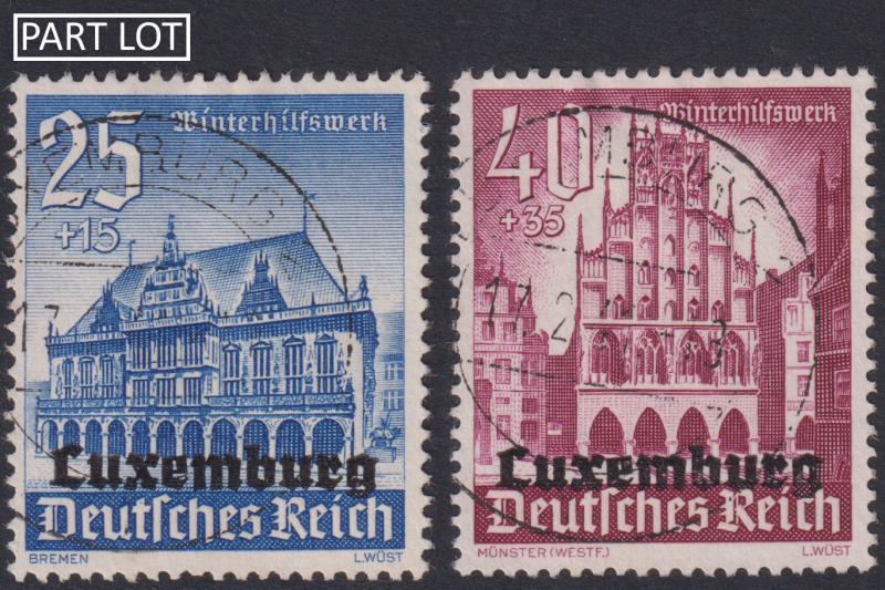 3374 U imageLuxembourg-German Occupation 1941 Relief Fund ovpt set of 9. SG 429-37. Cat £22. FU. (Image)