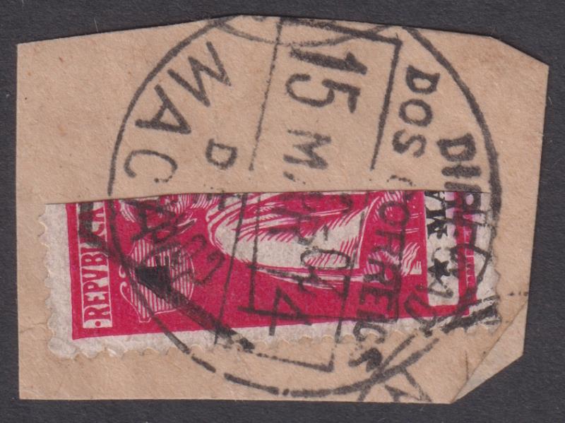 3376 U imageMacao 1914 4a Ceres, vert bisect (left half), on piece, 15 MAR 14 cds. Yang 213a. (Image)