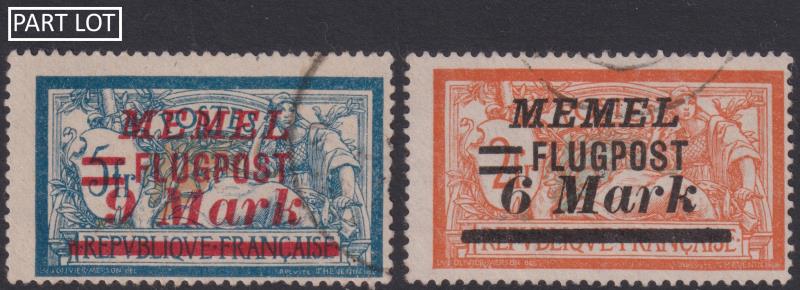 3380 U imageMemel 1922 2MK-9MK Airmail ovpts on France "Merson" type: horiz "FLUGPOST" in block-type capital letters. Top 6 values ex set of 10. SG 119-24. Cat £156. FU. (Image)
