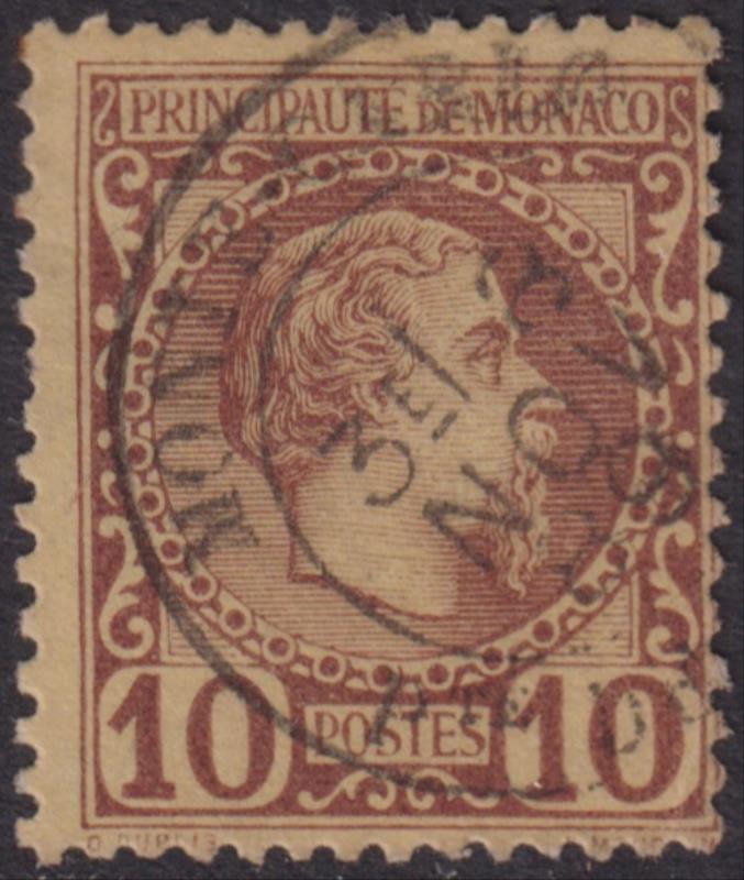 Monaco 1885 10c Prince Charles III. SG 4. Cat £55. FU. (Image)