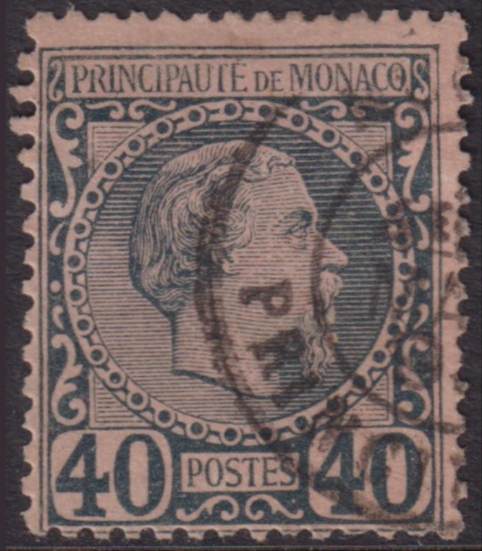 Monaco 1885 40c Prince Charles III. SG 7. Cat £60. FU. (Image)