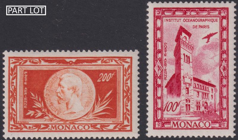 Monaco 1946 Air ovpts mint, 1946 Airs to 200F MUH. SG 320-1, 323-6. Cat £28.80.