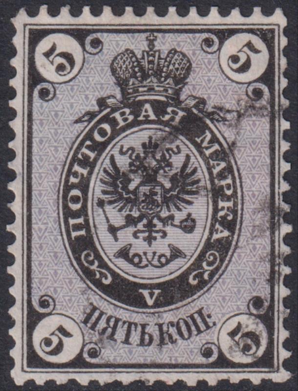 3442 U imageRussia 1866 5K black & lavender, o14½ x 15, horiz laid paper. SG 20a. Cat £31. FU. (Image)