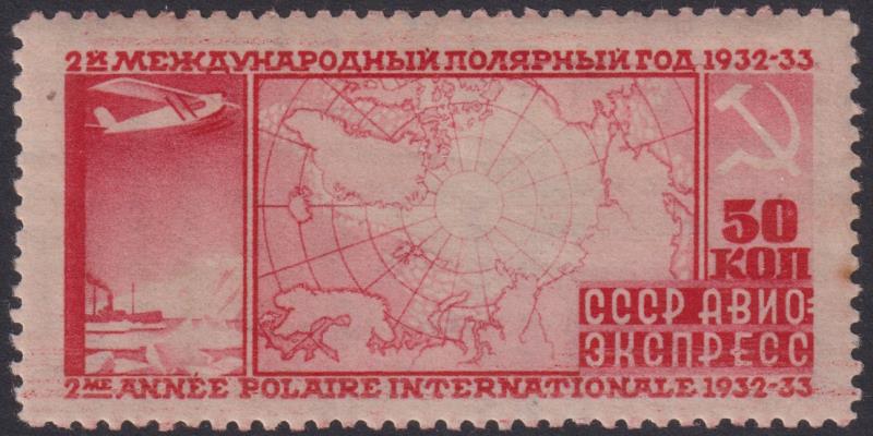 3447 M imageRussia 1932 50K 2nd International Polar Year carmine, p12¼ (Special Arctic Flight). Small mark on perf. SG E591. Cat £55. LH mint. (Image)