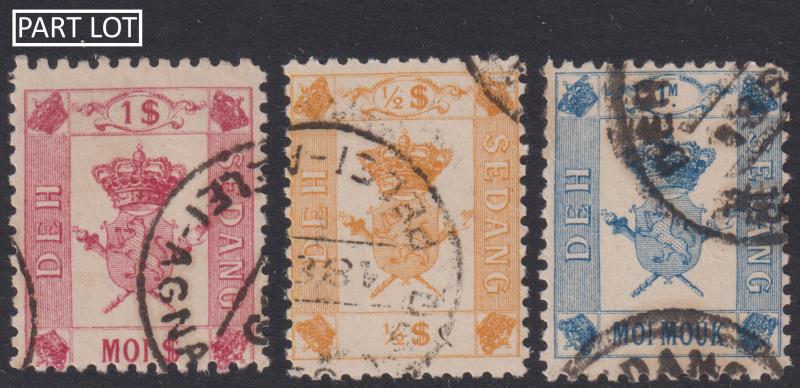 3454 U imageSedang 1889 set of 7 fantasy stamps (crown over leopard [?] arms), stated to be "forgeries". The originals supposedly issued as local postage stamps by the "king of Sedang", a remote territory in Annam, French Indo-China, but were actually an unauthorise (Image)