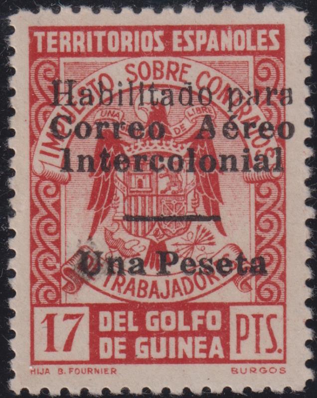 3460 M imageSpanish Guinea 1941 1P Air ovpt (black) on 17P fiscal stamp (red). SG 317a. Cat £50. LH mint. (Image)