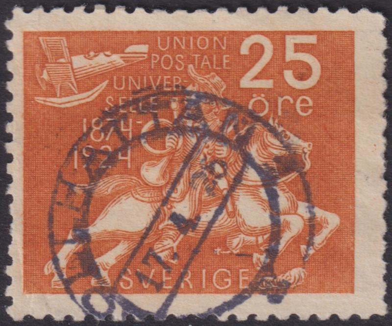 Sweden 1924 25ø UPU 50th Anniv orange. SG 165. Cat £35. GU/FU. (Image)