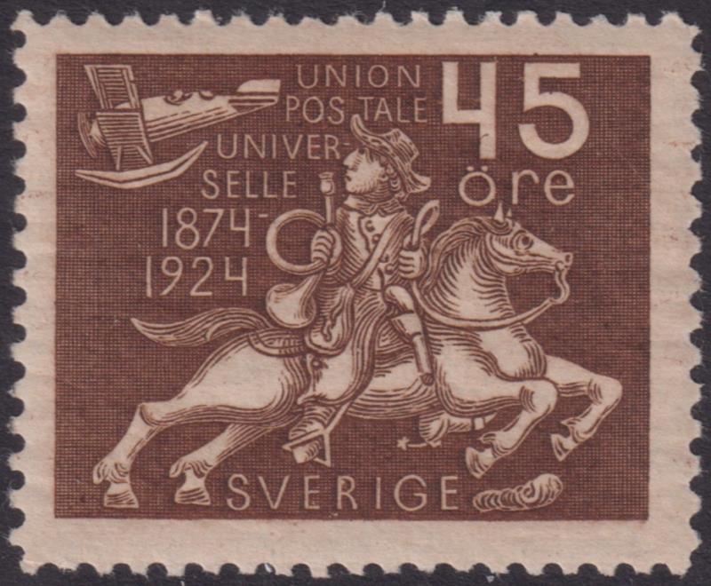 Sweden 1924 45ø UPU 50th Anniv brown. SG 169. Cat £48. VLH mint. (Image)