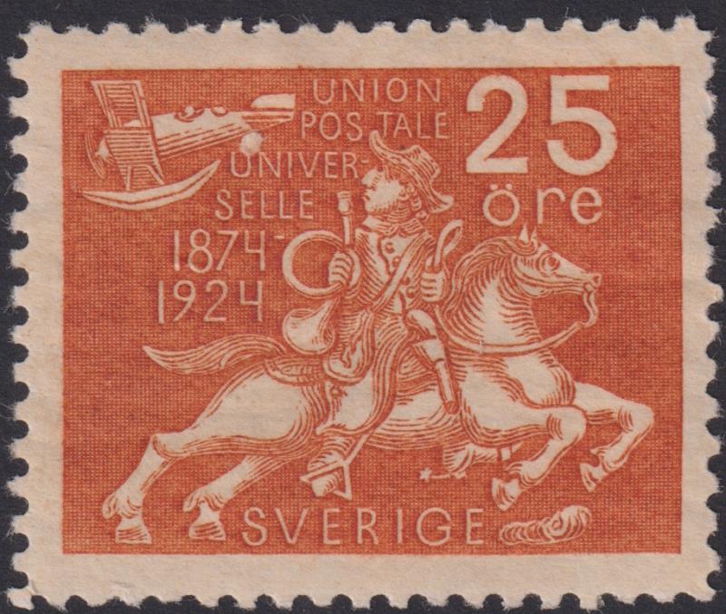 Sweden 1924 25ø UPU 50th Anniv orange. SG 165. Cat £32. Mint. (Image)