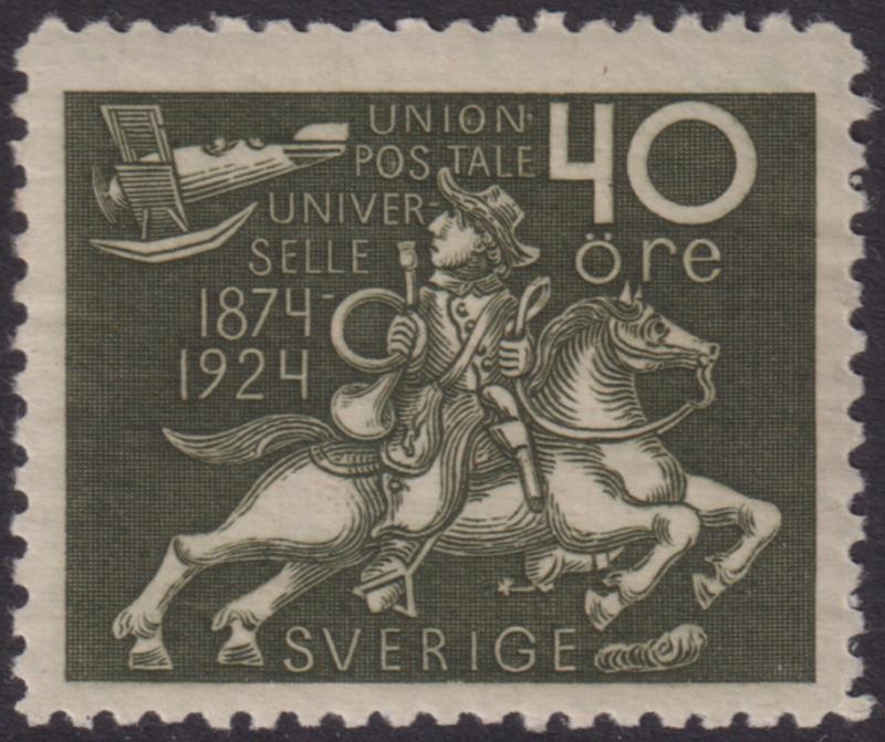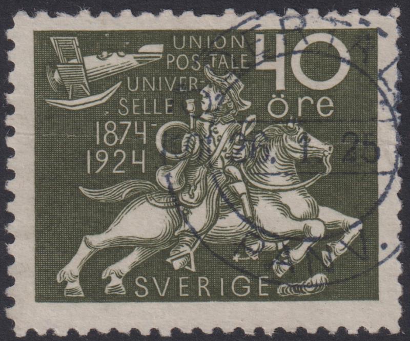 Sweden 1924 40ø UPU 50th Anniv olive-green. SG 168. Cat £35. FU. (Image)