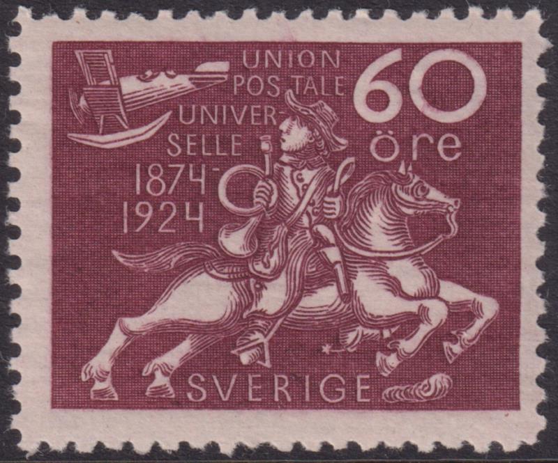 Sweden 1924 60ø UPU 50th Anniv maroon. SG 171. Cat £60. VLH mint (may be MUH). (Image)