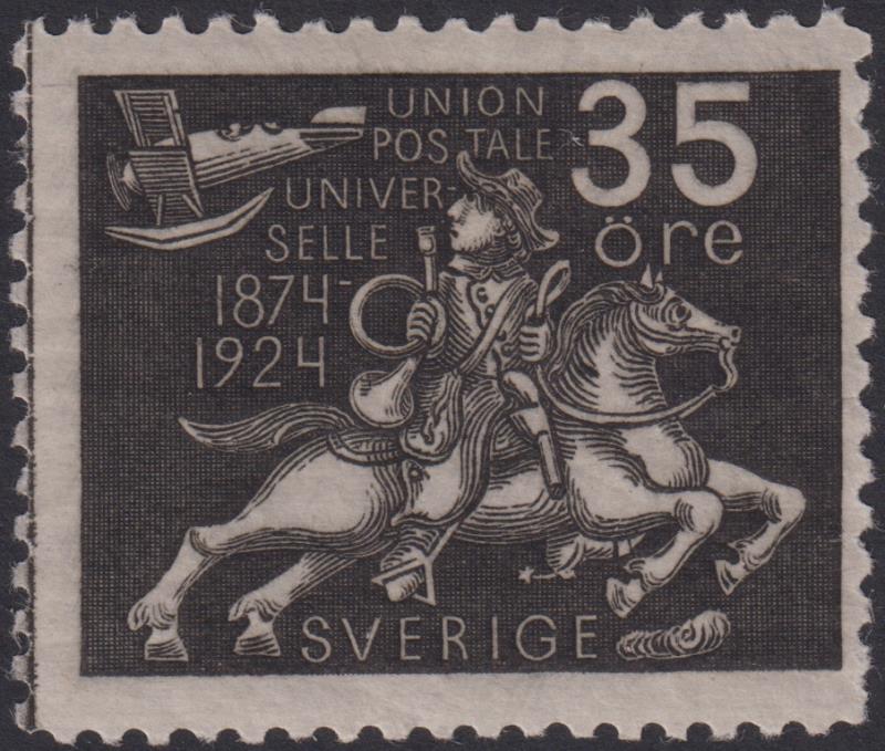 Sweden 1924 35ø UPU 50th Anniv black. SG 167. Cat £40. VLH mint. (Image)
