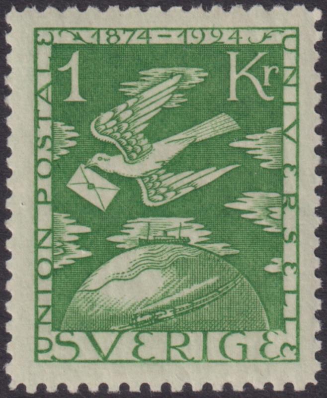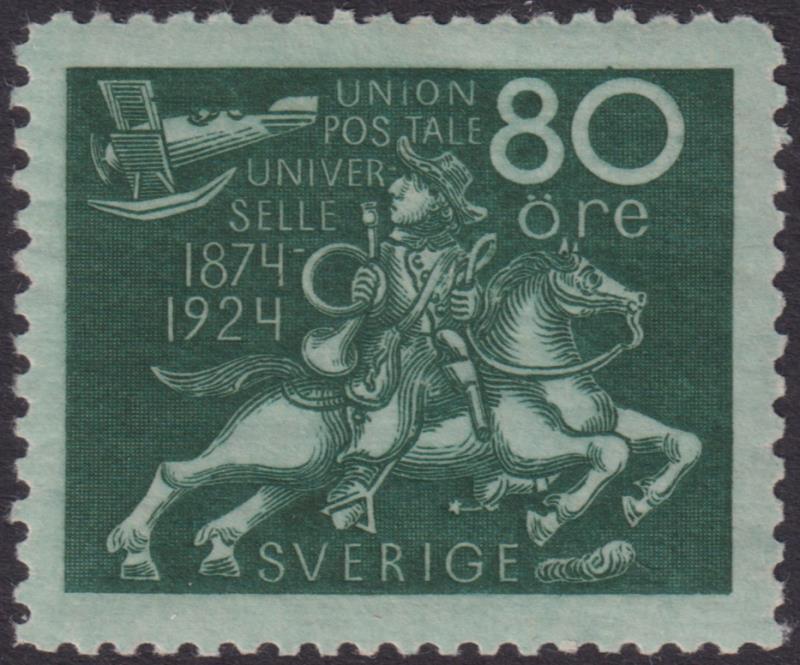 Sweden 1924 80ø UPU 50th Anniv deep green. SG 172. Cat £47. VLH mint. (Image)