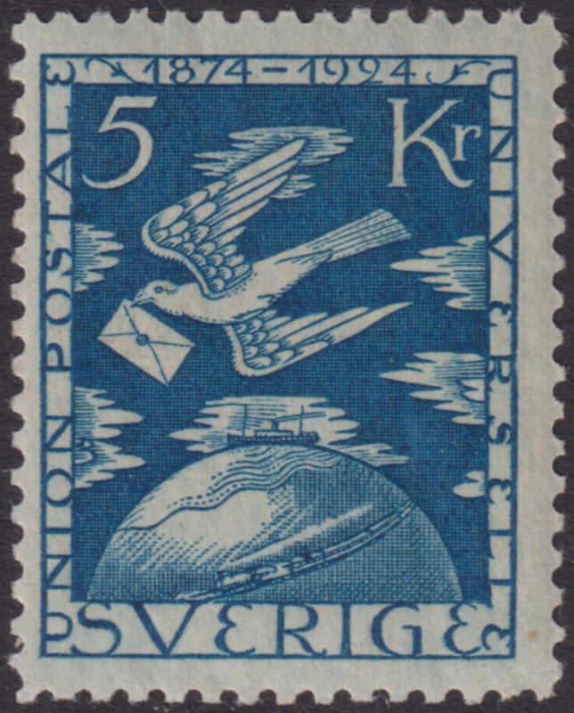 Sweden 1924 5K UPU 50th Anniv blue, top value. SG 175. Cat £325. LH mint. (Image)