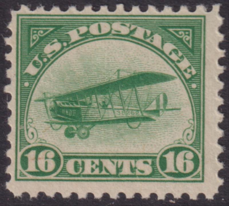 USA 1918 16c Airmail green (Curtiss "Jenny" biplane), o/c. SG A547. Cat £95. MUH. (Image)