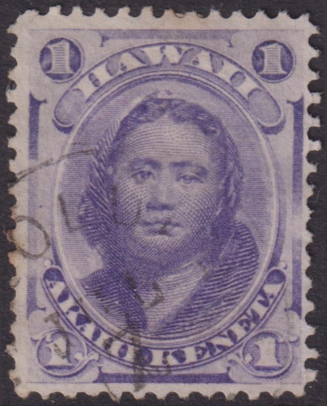 USA-Hawaii 1878 1c Princess Victoria Kamamalu bright violet, p12. SG 27a. Cat £30. FU. (Image)