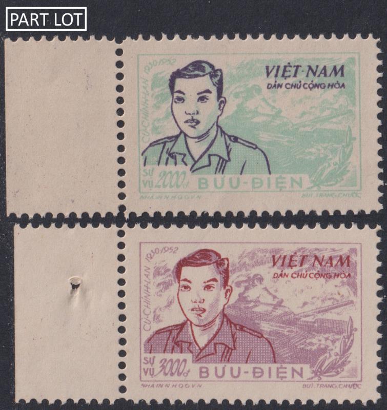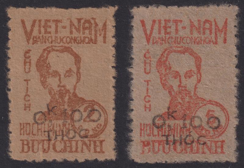 Vietnam-North 1955 100k officials ovpt on 2d, 5d. SG NO33-4. Cat £500. No gum as issued. (Image)
