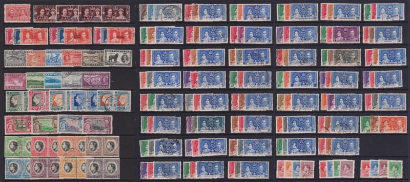 26 U imageBritish Commonwealth 1937 GVI Coronation issues, almost complete colln of 199 diff FU on 3 Hagner pgs (incl both Newfoundland sets). Missing only Montserrat set of 3. SG cat £257 as series. (Image)