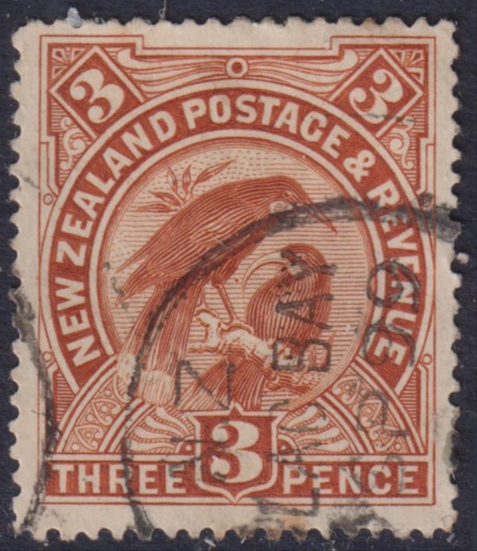 Colac Bay (IN 1882-1974) fine, near complete ? Sept 1899 "A" class cancel on 3d Huias London print. Wooders 6. (Image)