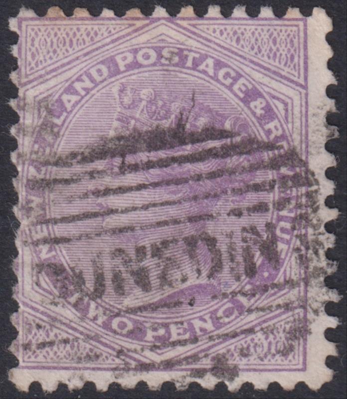 Dunedin - fine near complete "DUNEDIN" in bars oval obliterator on 2d SSF p12 x 11½ (c1880s) used as single obliterator. (Image)
