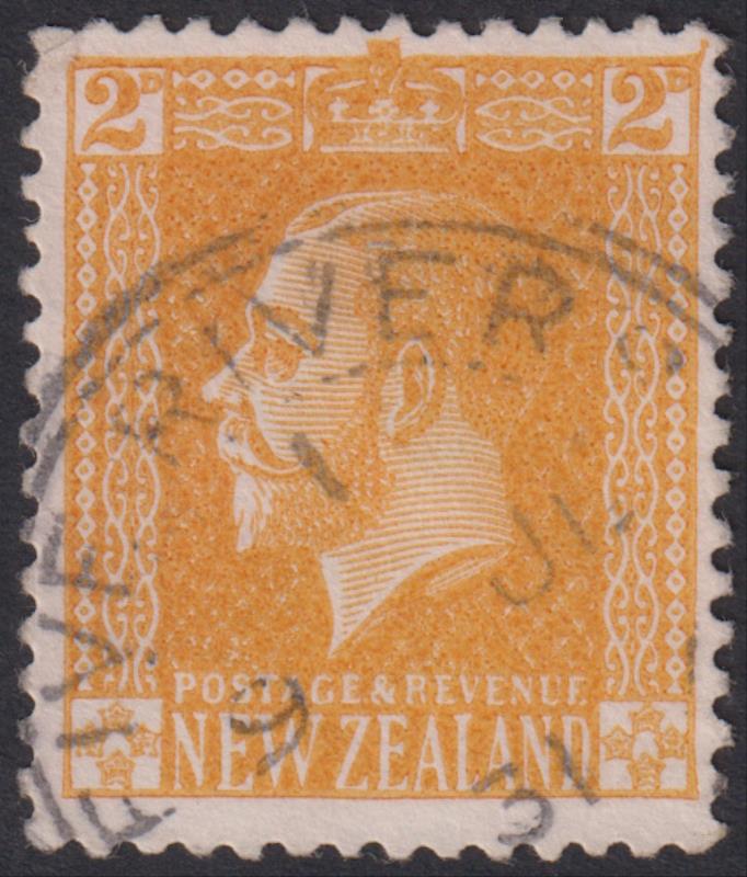 Gisborne light near complete strike of large "8" in 7 bars oval obliterator on 2d FSF, p12½. (Image)