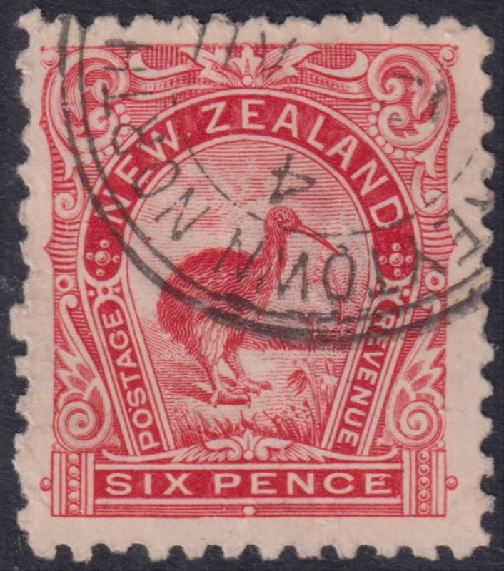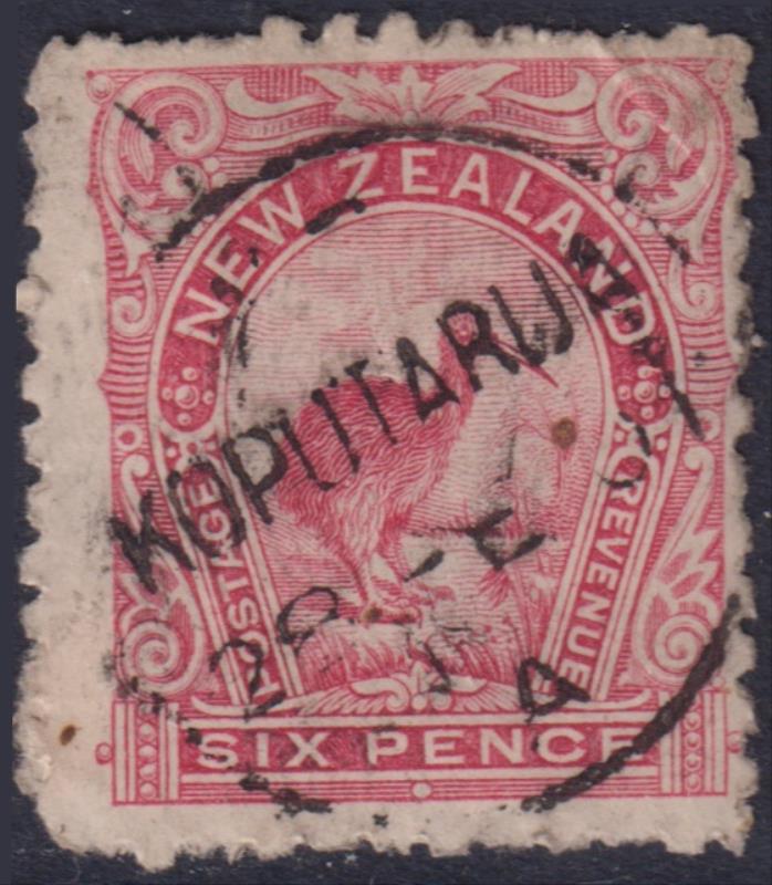 Koputarua (PM 1889-1916) fine 28 Feb 1901 "A" class cancel on 6d red Kiwi. Wooders 6. (Image)