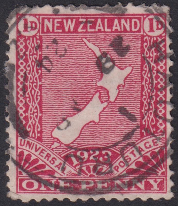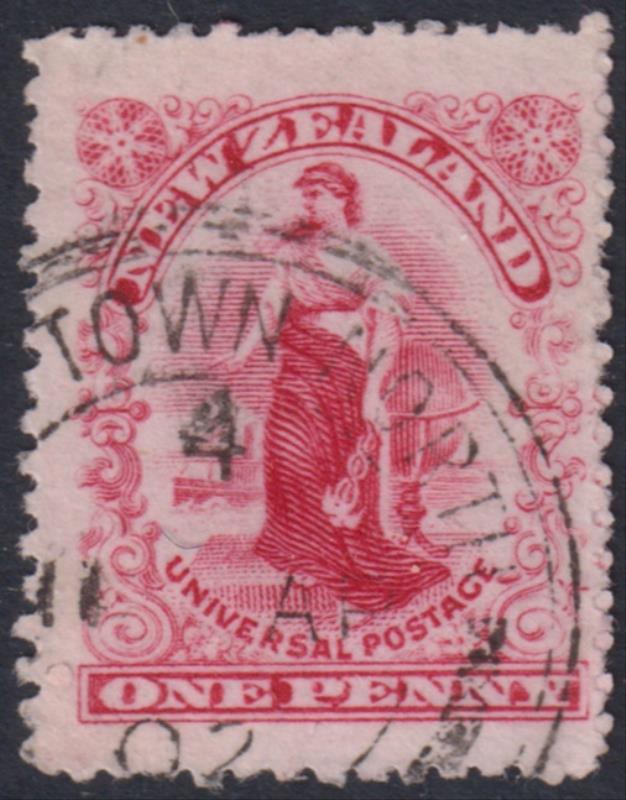 Hawera (WG/NU) good strike (a bit messy) of "WG/6" in 7 bars oval obliterator on c1901 1d Universal. (Image)