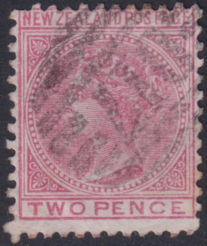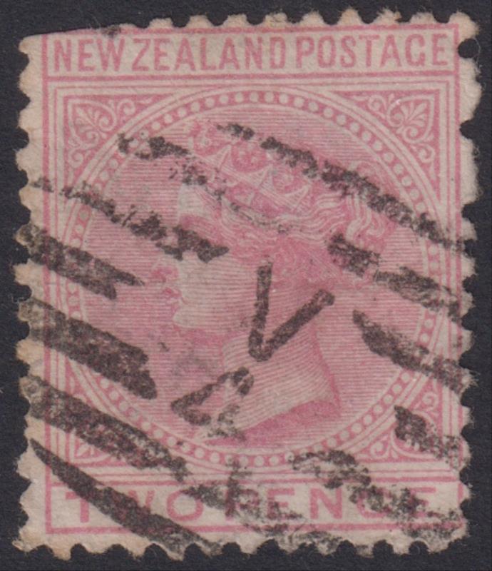 Lawrence (DN - formerly Tuapeka) fine nearly complete "O17" barred oval obliterator on 2d FSF p12 x 11½. Gold mining centre. (Image)