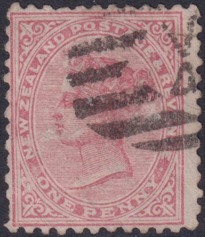 Kumara (GM 1876- ) fine part strike of "V / 4" in 7 bars oval obliterator on 1d SSF p12 x 11½. Earlier used at Ross. Both gold