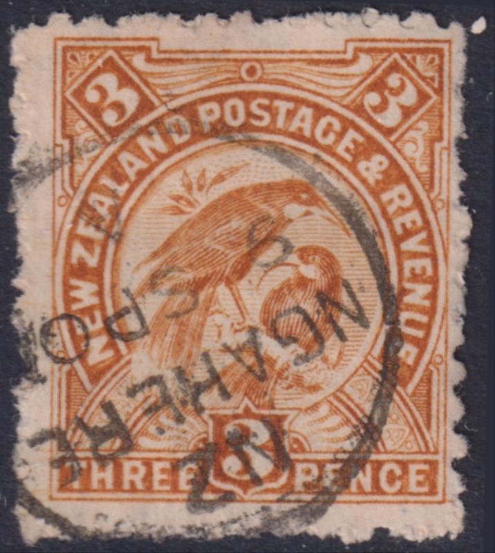 Ngahere (GM 1887-1988) fine 9 Sept 1904 "A" class cancel on 3d Huias, p11, with letter "Z" wmk. (Image)