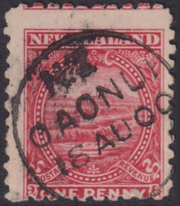 Oaonui (NU 1880-1939) very fine 18 Aug 1900 "A" class cancel on 1d Terraces. Wooders 5. (Image)