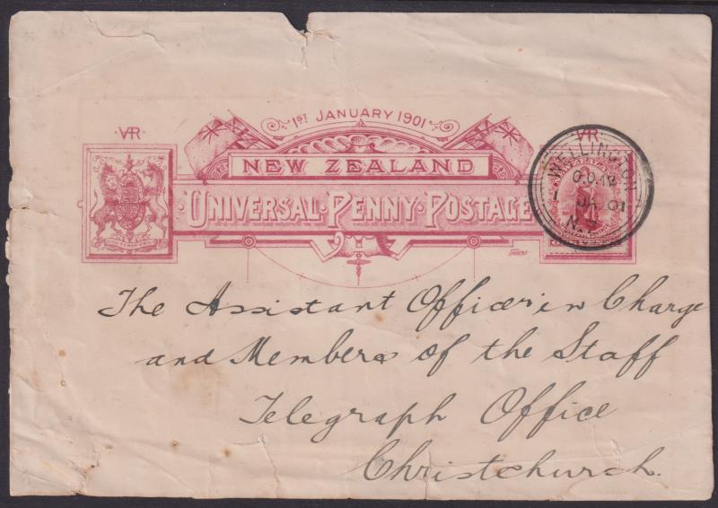 1897 1½d QV violet on cream lettercard, p10, stain tone spots. Samuel BA 7a. Cat $35.