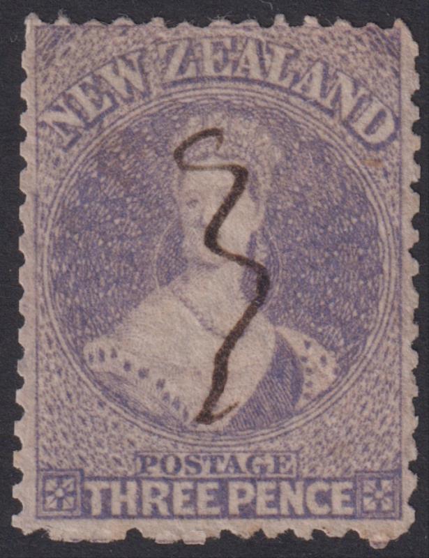 FFQ 3d dull lilac, p12½, star wmk. Canc anonymous squiggle m/s pmk. SG 117. Cat £45. Used. (Image)
