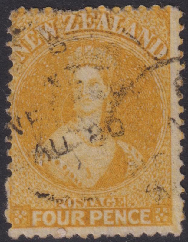 FFQ 4d yellow, p12½, star wmk, slightly o/c, double light cds. SG 120. Cat £200. FU. (Image)
